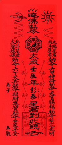 安奉101年太歲星君文疏(農曆1/9、1/15或擇吉日安奉) 伏以吉日良辰,天地開張,立案焚香,焚香拜請,香煙昇起神通萬里,香煙沉沉神必降臨,拜請年值功曹,月值使者,日值功曹,時值使者,傳香童子,奏事童郎,為民傳奏。 奉請虛空過往列位眾神佛,太陽星君,太陰娘娘,南斗星君,北斗星君… 奉請值年壬辰太歲彭泰星君,到此鎮守,敕令六甲神將,六丁天兵,鎮宅護持,敕令天官賜福,招財進寶,鎮宅光明,閤家平安,善信○○○,農曆○○年○○月○○日○時福生,現居地址 今吉日良時,在廳前備心香一柱、清茶四果、金銀財寶…等 奉請虛空過往諸位神佛,隨香降到本家,鎮宅護持,庇佑善信○○○全家,今年逢凶化吉,四時無災,八節有慶,男增百福,女納千祥,身體健康,平安順利。(面向外呼請)